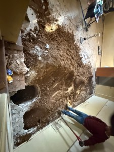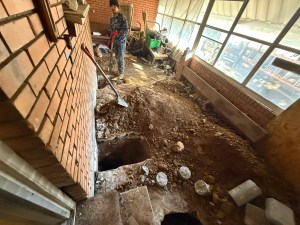 The crew began by removing existing concrete and excavating the subgrade to create new footing trenches and structural support channels. The site now shows exposed soil, broken concrete removal, and precision trenching in preparation for reinforcement.